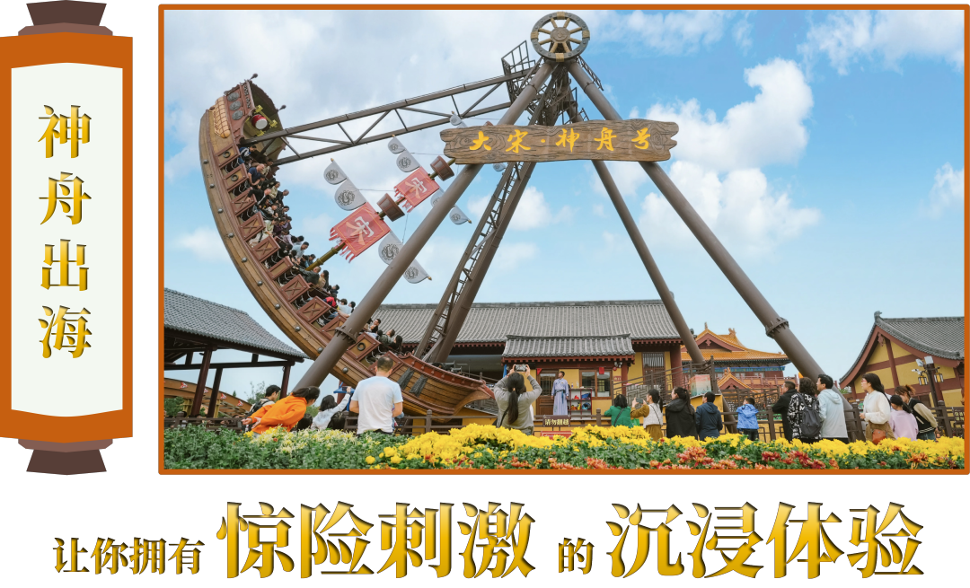“神舟出海”游乐项目复原了大宋官方使臣出使海外国家的“神舟”,你可乘坐“大宋·神舟号”与大宋使臣一起扬帆起航、乘风破浪!
